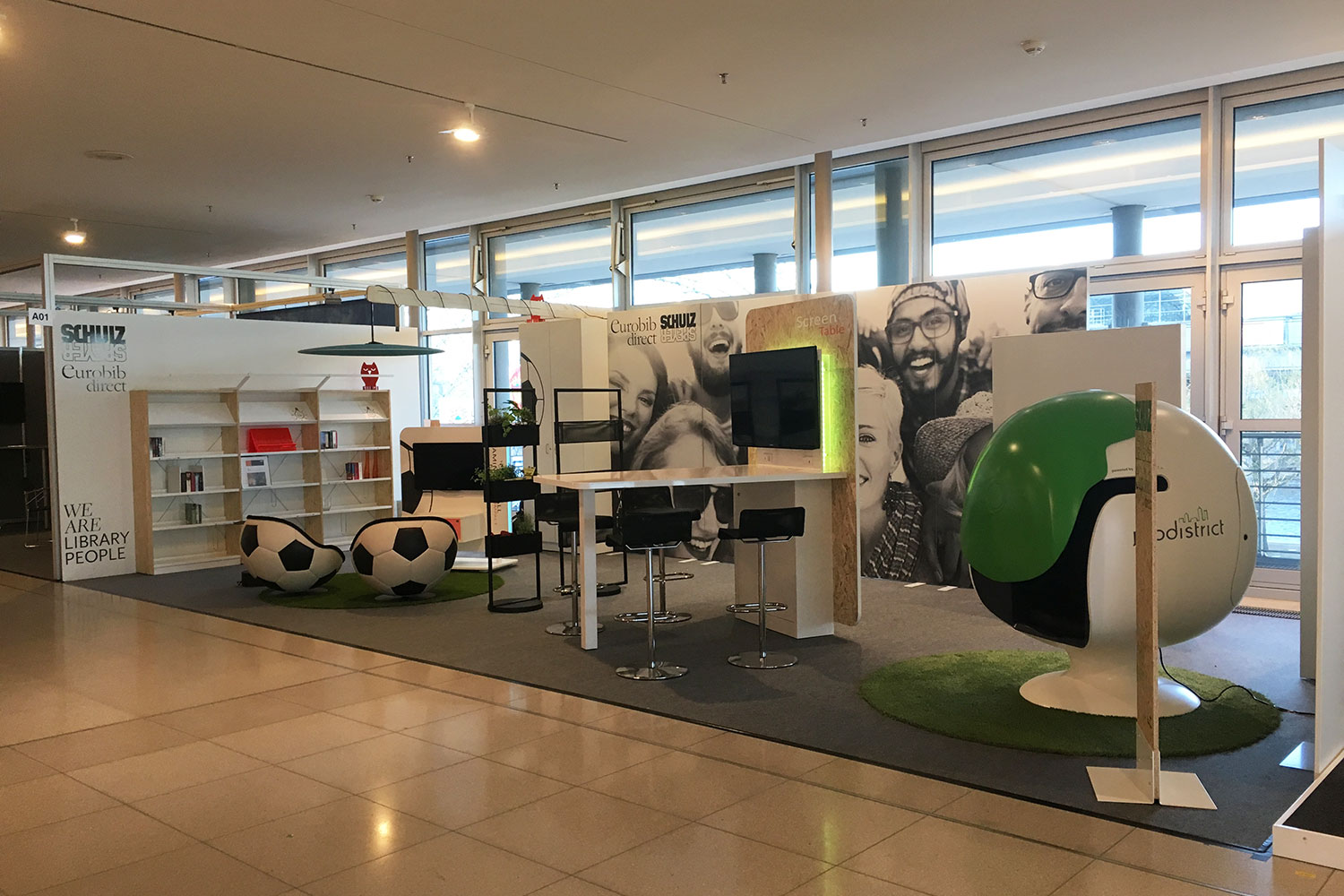 Dazu kamen viele Produkte, um Bibliotheken effektiver und spannender zu machen unsere Gaming wall compact mit zwei Sesseln in Handarbeit aus Leder in Fußballform, unsere neue Regalbeleuchtung sowie wirksame Akustiklösungen für jede Situation.