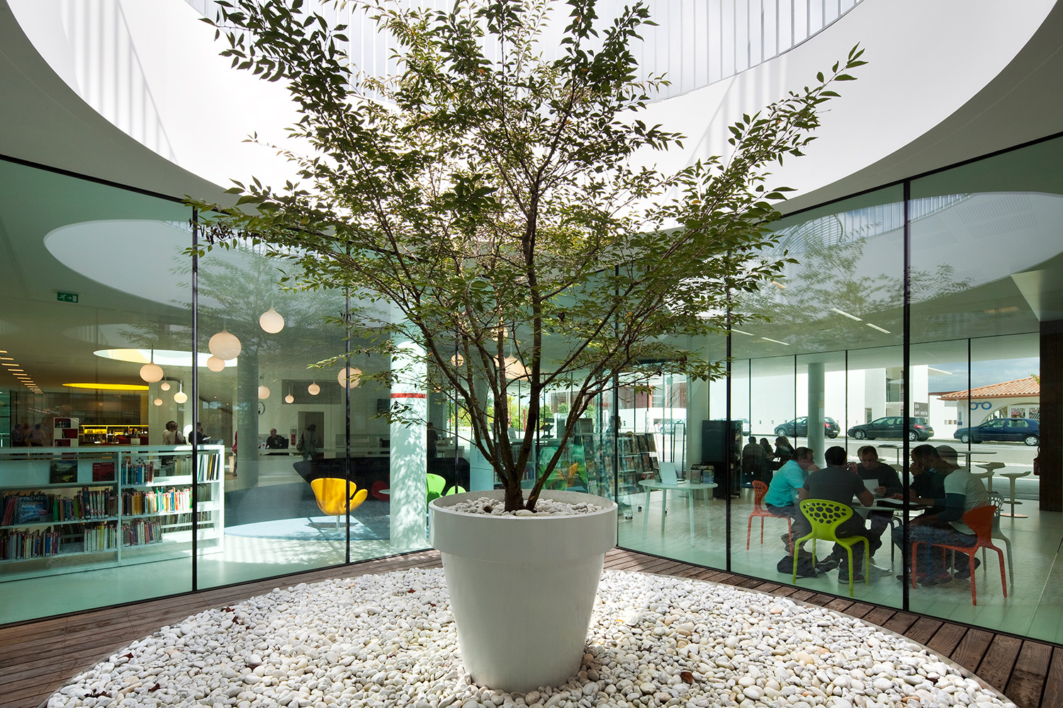 Die Architekten fanden einen Weg, die Forderung der Schenkerin zu erfüllen, indem sie auf einem Teil des Daches der Bibliothek einen öffentlichen Garten anlegten. Die Bäume in den Glaskästen im Innern der Bibliothek sind Teil dieses Dachgartens. Desweiteren gibt es mitten im Gebäude eine Treppe nach außen, über die man leichten Zugang zu dem Garten hat.