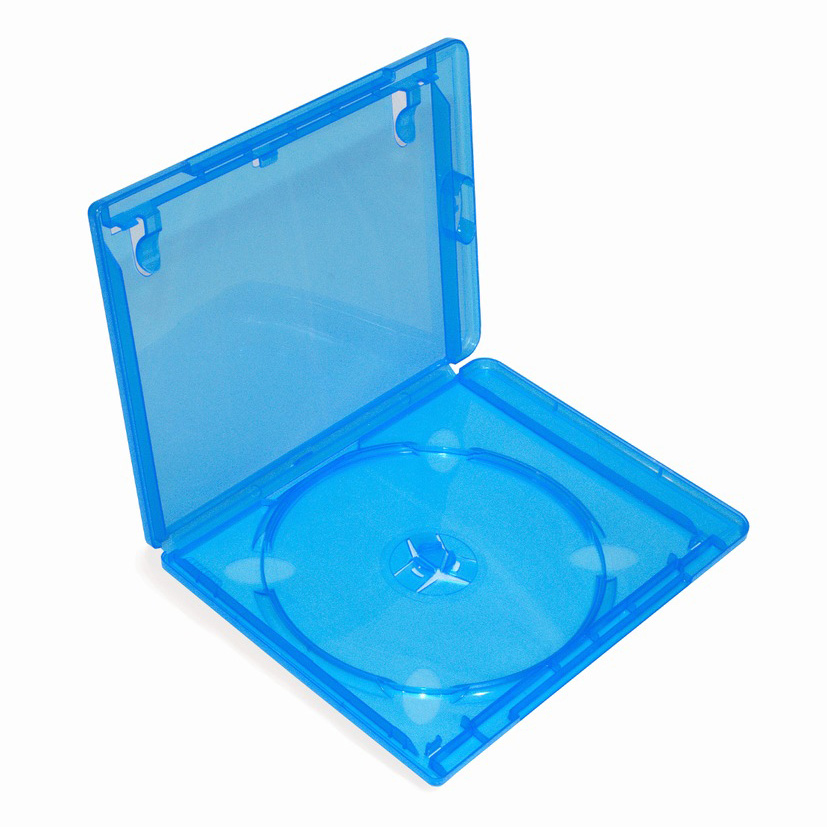 Blaue Kunststoffbox für Blu-Ray/PS3 Platten geeignet. Mit Platz für eine oder zwei Platten, eine Booklet und Fronttasche für Umschlag.