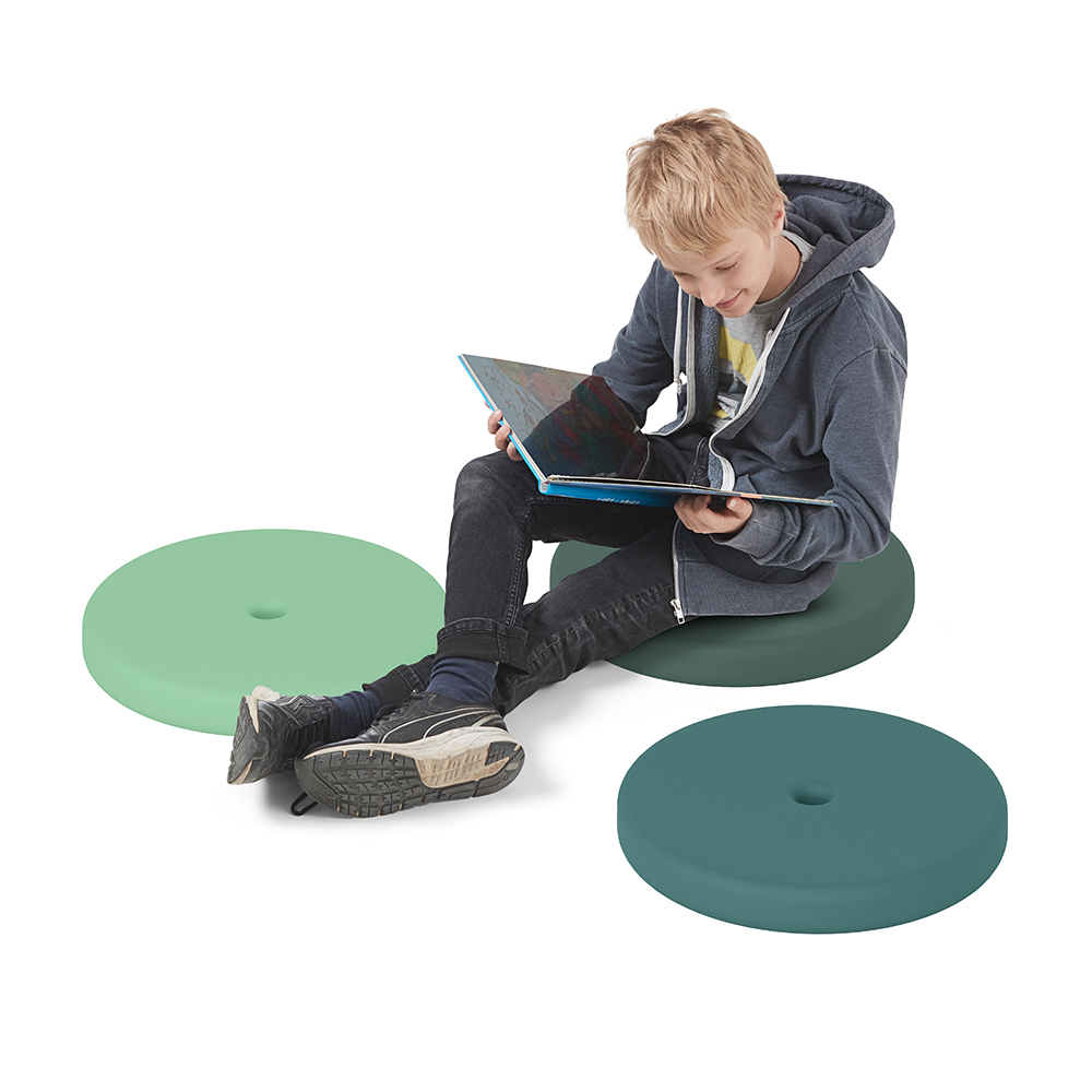 Das Kissen ist erhältlich in zwei Designs und verschiedenen Farben. Ideal zur Nutzung auf dem Boden, auf Bänken und Podien.