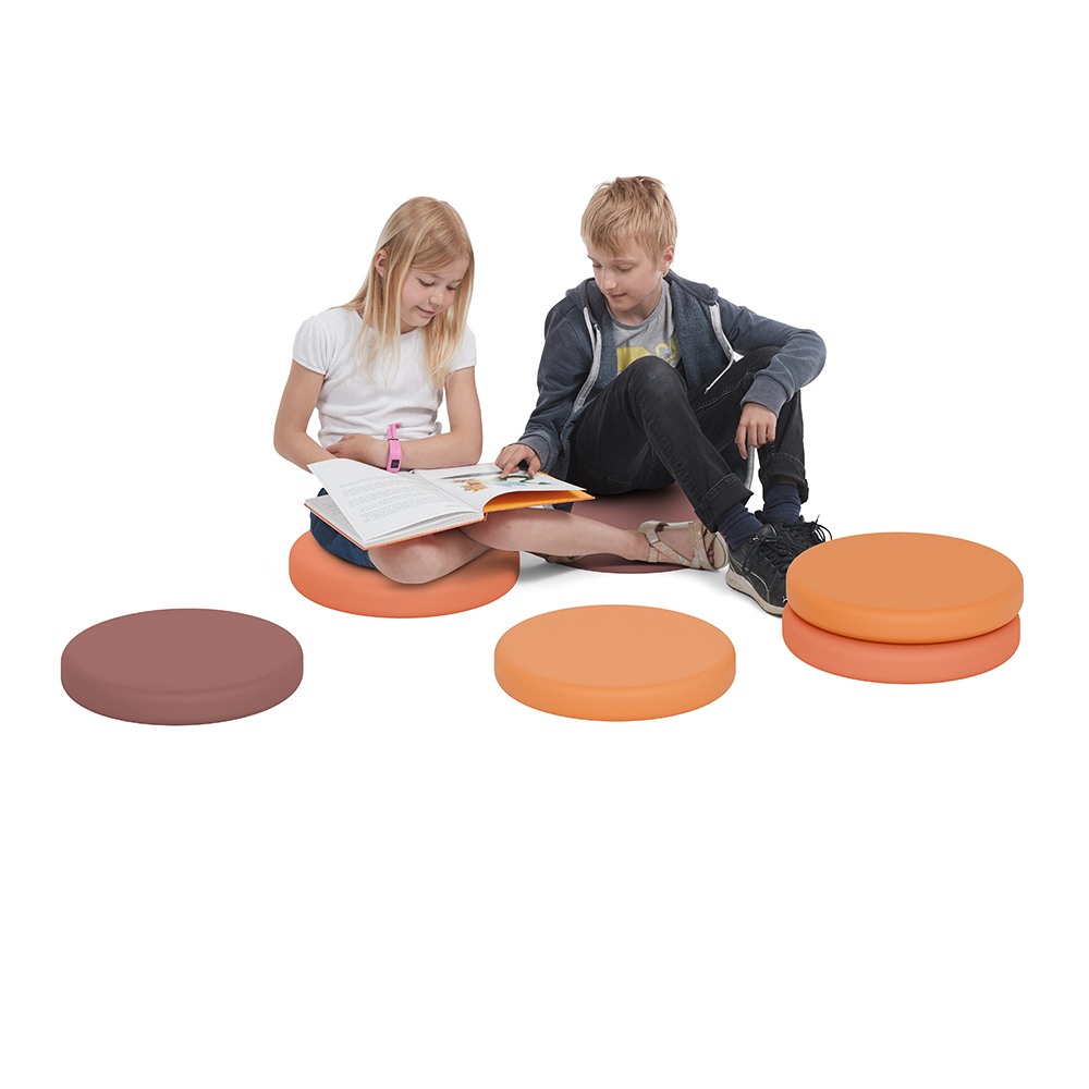 Das Kissen ist erhältlich in zwei Designs und verschiedenen Farben. Ideal zur Nutzung auf dem Boden, auf Bänken und Podien.