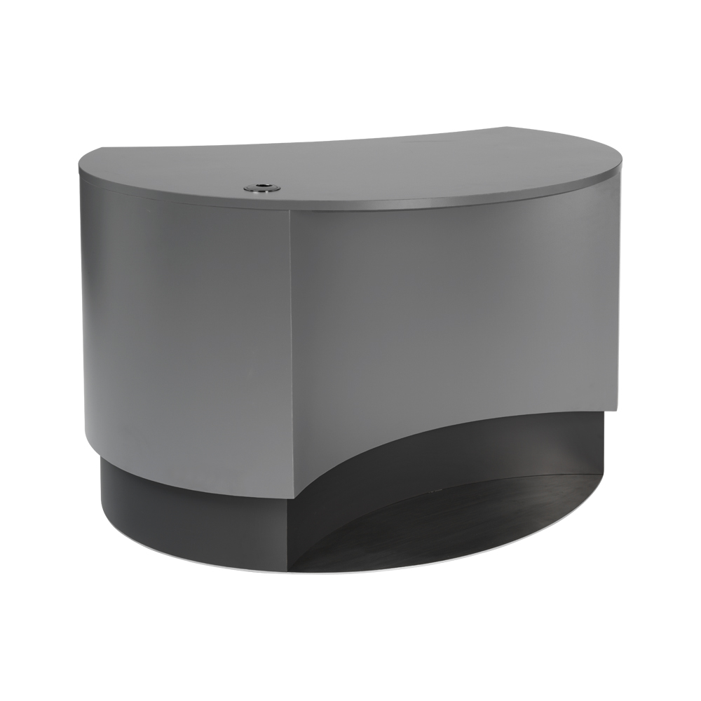 Stilvolle, funktionelle und kompakte Theke mit ovaler, zurückgesetzter Front.