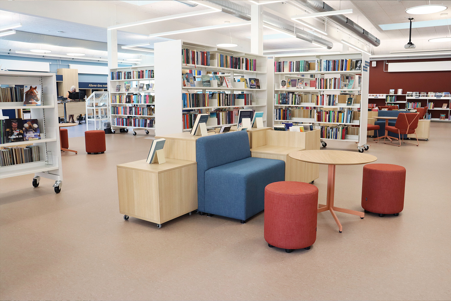 Eine der wesentlichen Verbesserungen in der neuen Bibliothek ist ihre Flexibilität. Alle Möbel sind auf Rollen, sodass Besprechungsräume und Gemeinschaftsräume für verschiedene Zwecke genutzt werden können. „Alle unsere Möbel sind so konzipiert, dass sie leicht zu bewegen sind, sodass wir die Räume schnell für verschiedene Aktivitäten anpassen können, von Vorträgen und Workshops bis hin zu Tanz- und Musikveranstaltungen. Wir haben eine Bibliothek, die anpassungsfähig ist und es uns ermöglicht, mit den Entwicklungen und den Bedürfnissen unserer Besucher Schritt zu halten“, erklärt Lone Svensson.