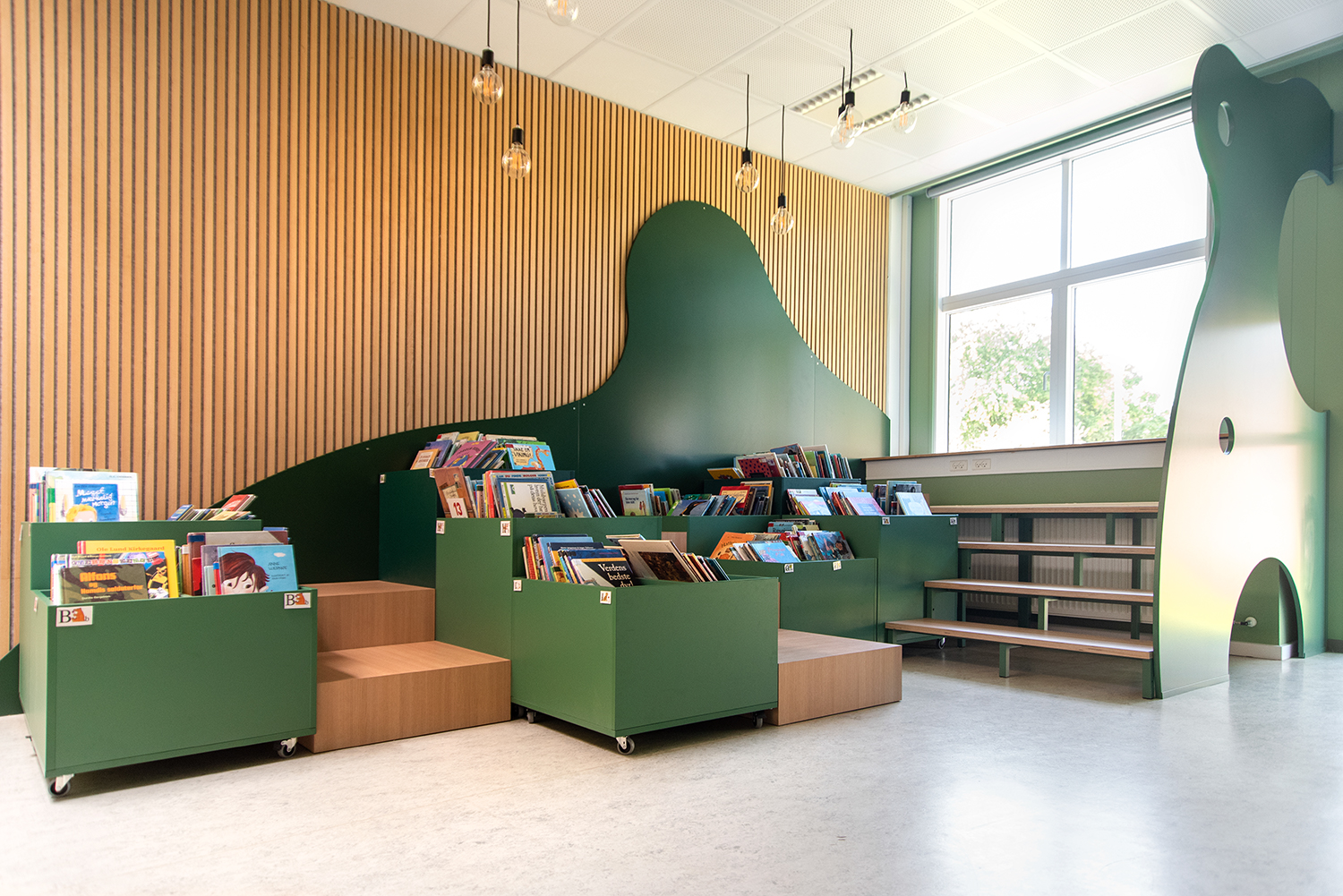 Die Schulbibliothek ist das Herz der Schule. Kinder jeden Alters werden zum Lesen angeregt, wenn die Inneneinrichtung abwechslungsreich und spielerisch ist.