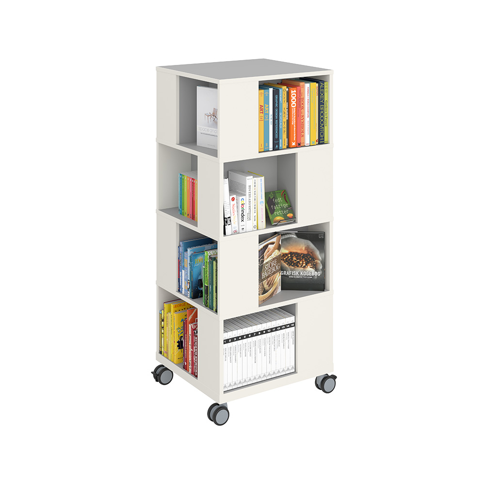 Ideal zur Aufbewahrung und Präsentation von Büchern, AV-Medien, etc. Gute Kapazität mit vier Fächern pro Ebene.