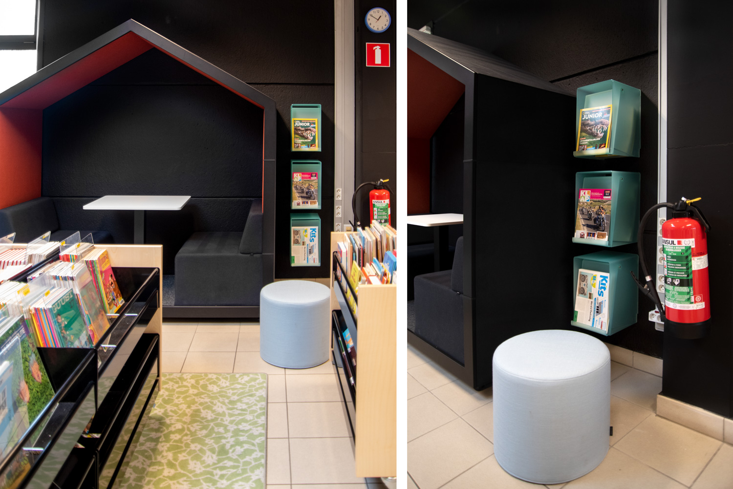 Die Kippklappe dient auch als Präsentationshalterung für die jeweils aktuelle Ausgabe.