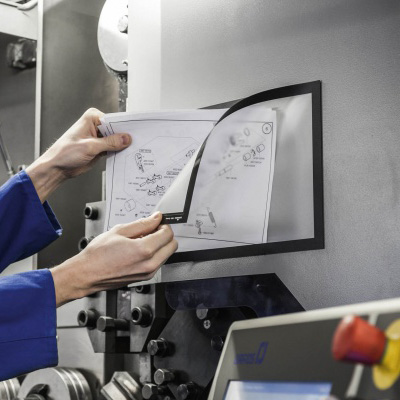 Dank der magnetischen Öffnung können Sie schnell und einfach die Infoblätter austauschen.