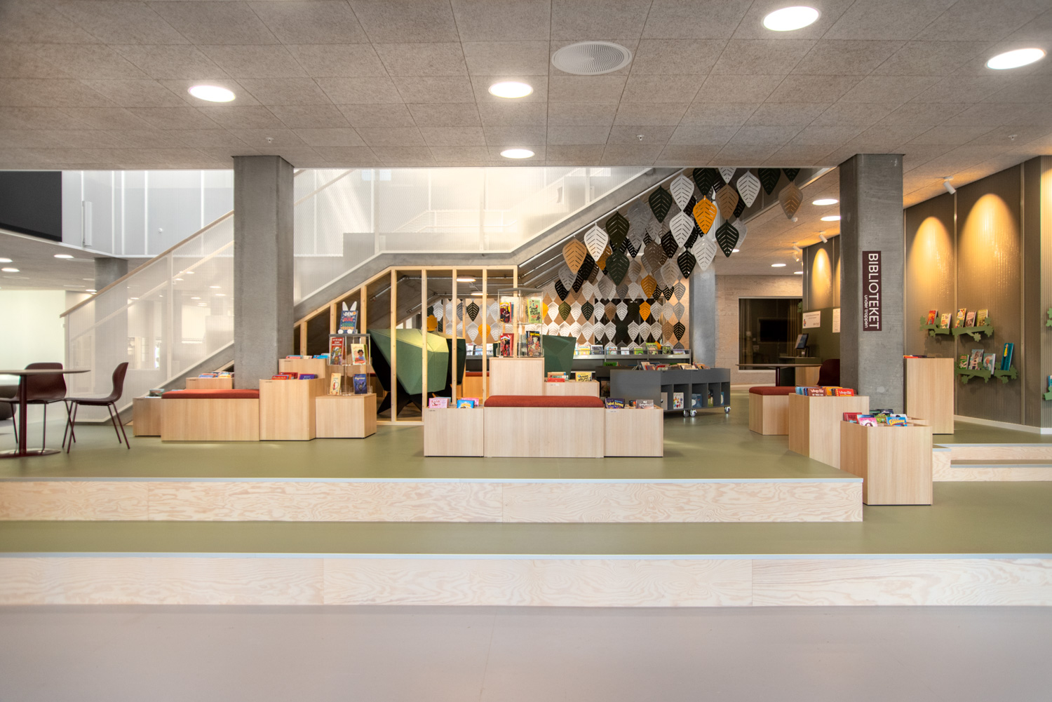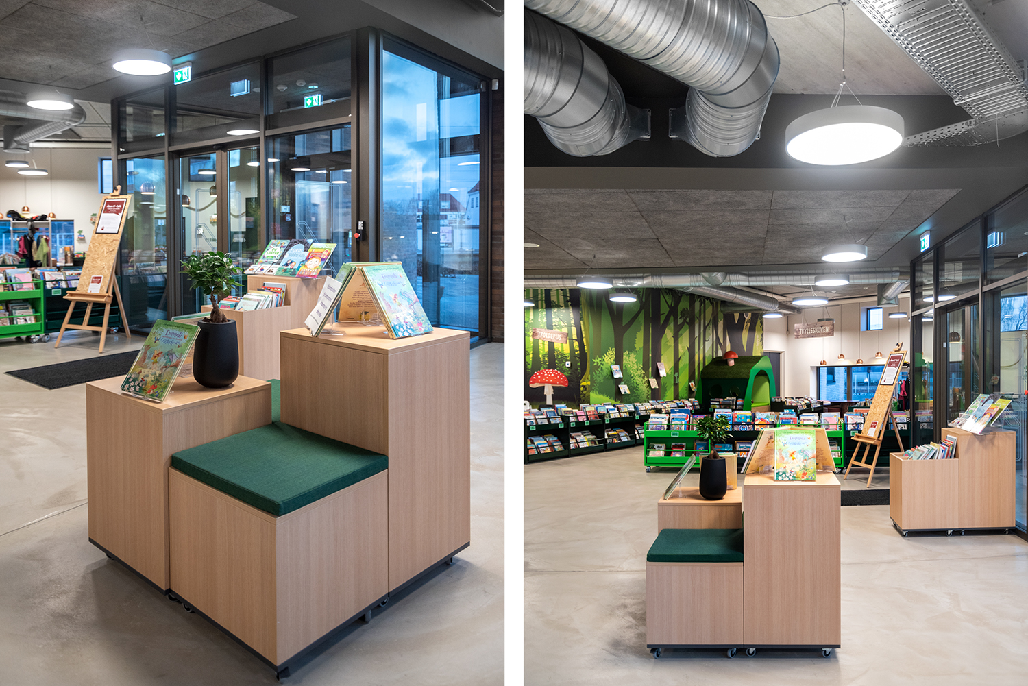 Maria ist eine Serie von Podien mit Trog erhältlich in zwei Größen (50 cm und XL 64 cm) und drei Höhen (Mini, Midi und Maxi) für flexible Bibliothekseinrichtungen.
