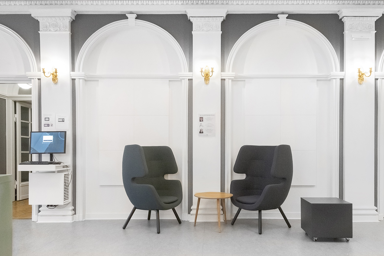 Moai sieht wunderschön aus wie die massiven Gesichtsskulpturen auf der Osterinsel. Das Sofa und die Sessel haben ein besonderes und persönliches Design, das gleichzeitig andere Bibliotheksmöbel ergänzt und kontrastiert.