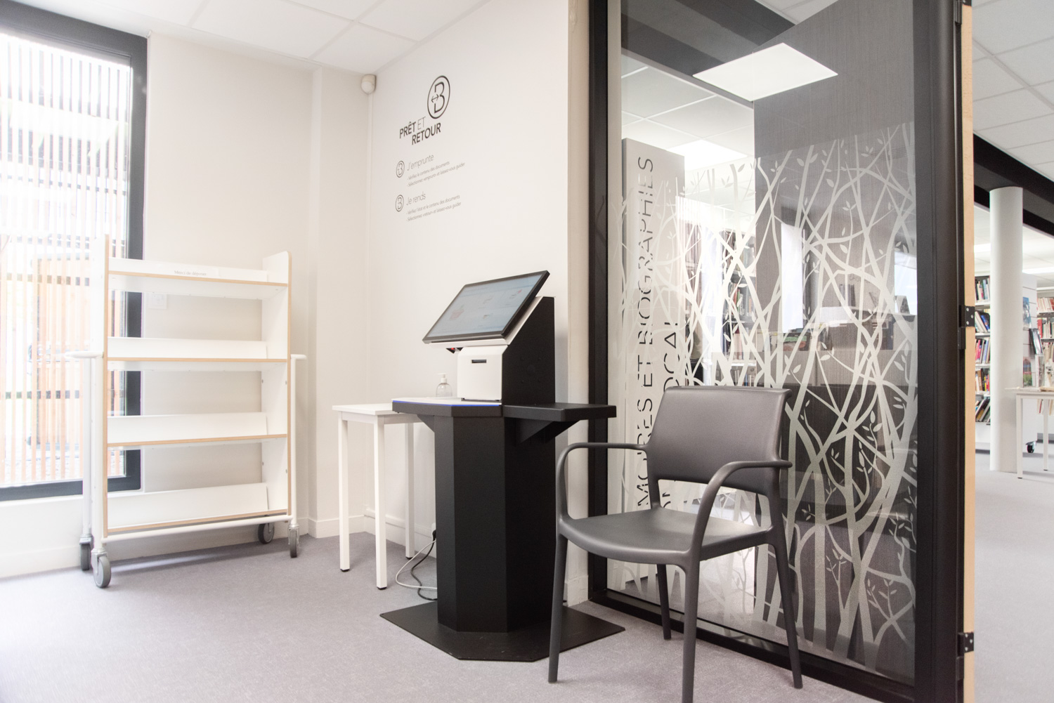 Diesen Bücherwagen kann man als fahrbares Miniregalsystem einsetzen - überall in der Bibliothek, wo es gerade gebraucht wird.