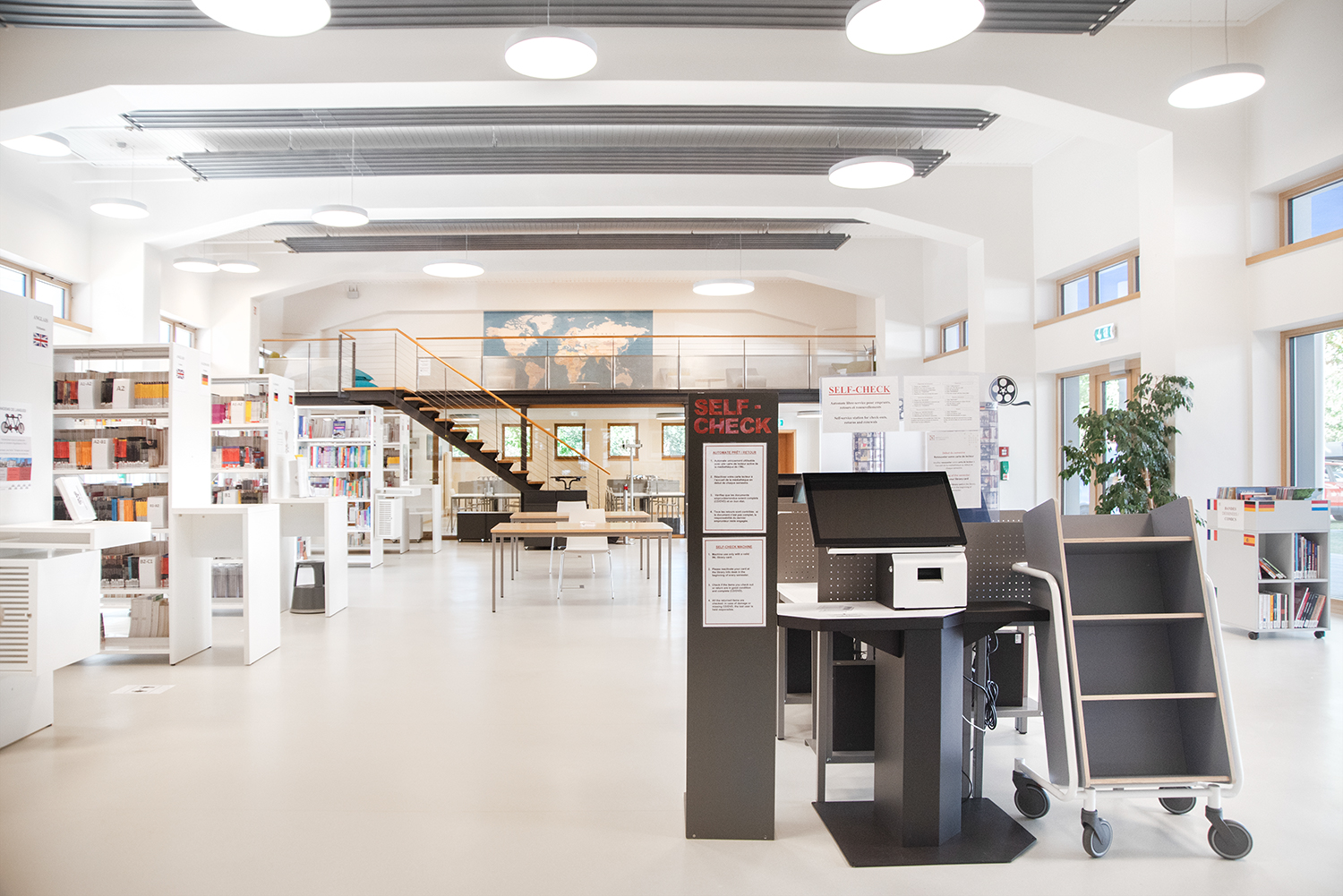 Die Neigung des Bücherwagens sorgt für eine sichere Medienunterbringung und bietet eine gute Übersicht über die jeweiligen Bücher.