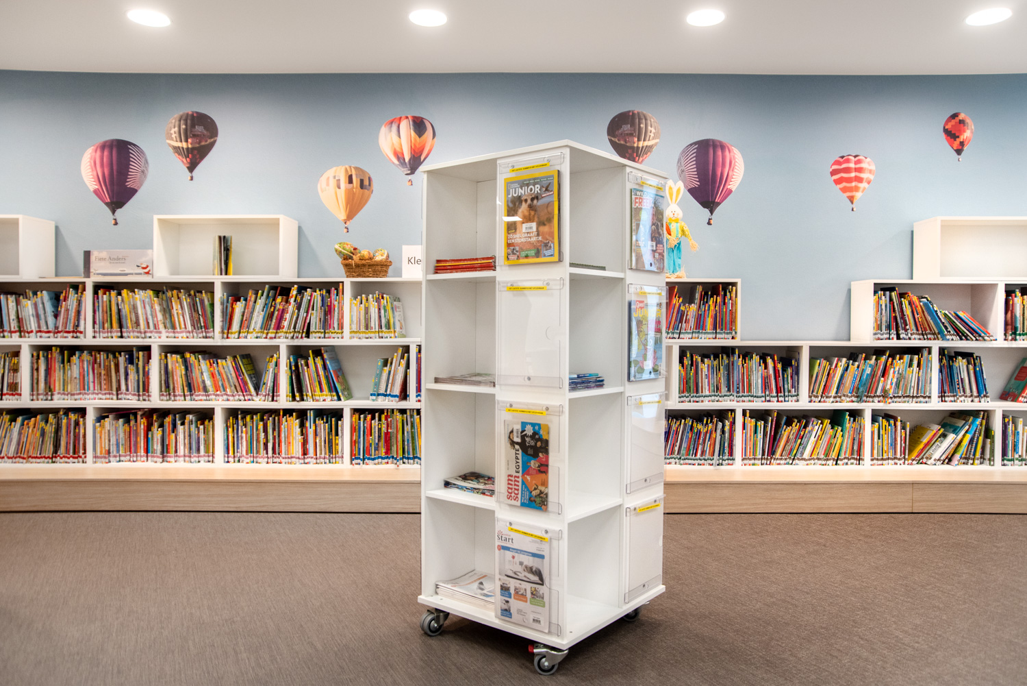 Mobiler Zeitschriftenturm zur Aufbewahrung und Präsentation von Zeitschriften, Magazinen, Jahrbüchern.