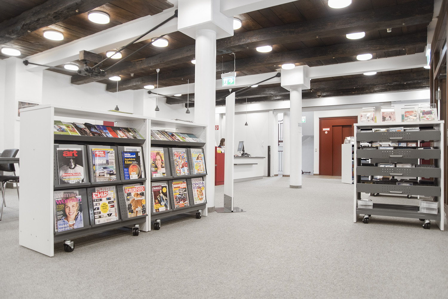 Zeitschriftenboxen für Fachböden bis 250 mm. Präsentiert Zeitschriften dem Besucher in einem einfachen Lesewinkel.