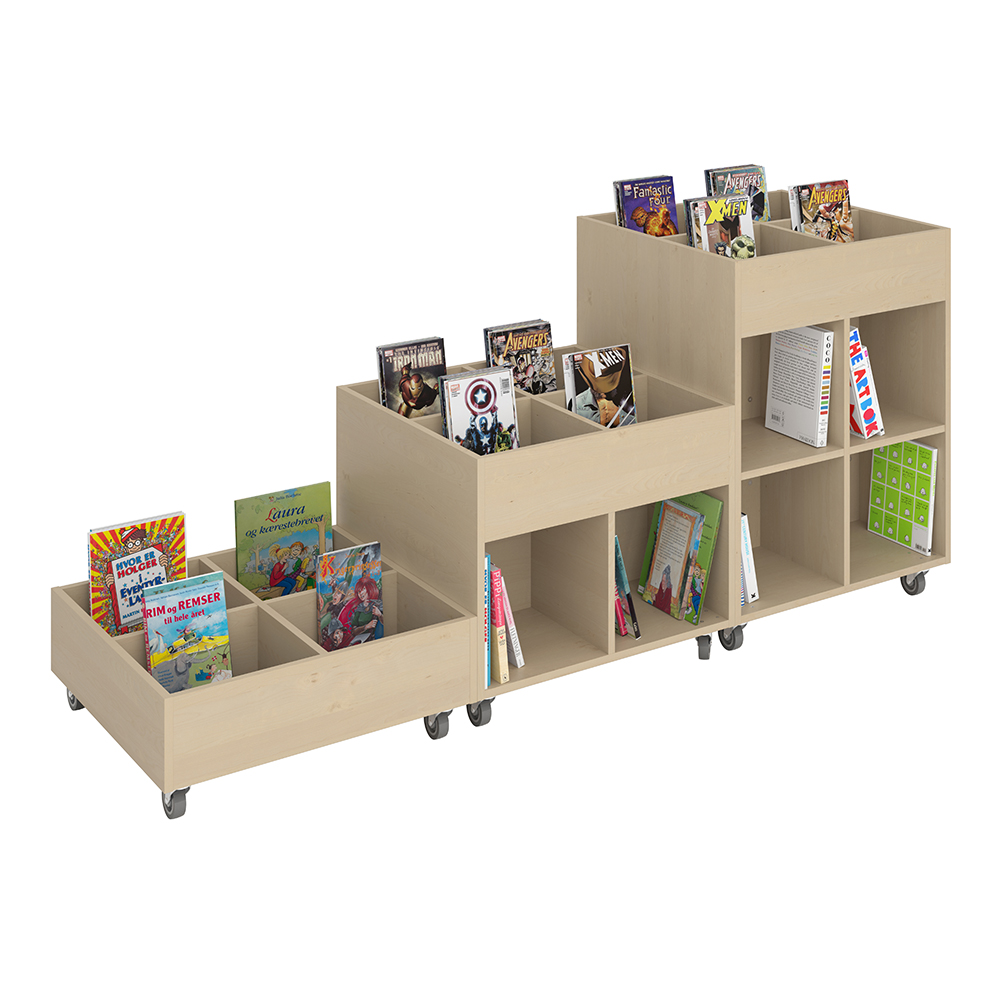Je nach Höhe ist er geeignet für Kinder und Erwachsene und kann so in allen Bereichen der Bibliothek eingesetzt werden.