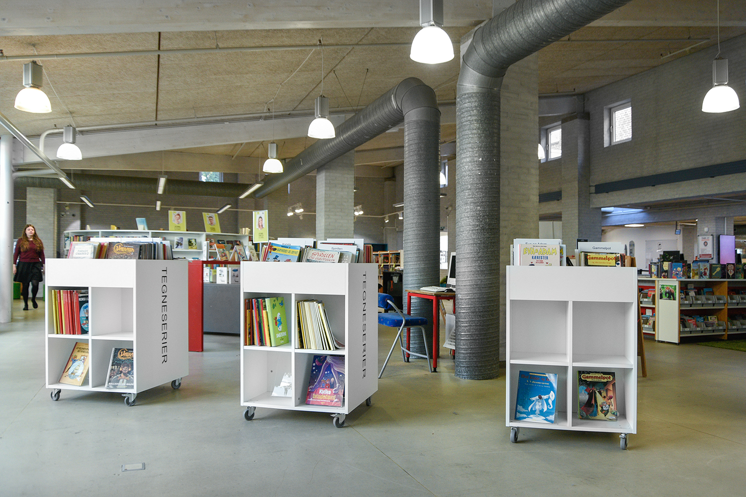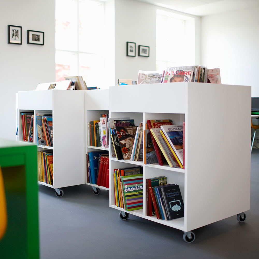 Je nach Höhe ist er geeignet für Kinder und Erwachsene und kann so in allen Bereichen der Bibliothek eingesetzt werden.