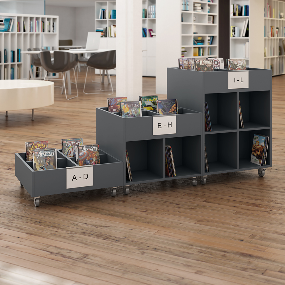 Sara ist eine Serie von Trögen, welche in quadratischer sowie gerundeter Ausführung in drei verschiedenen Höhen erhältlich ist, für flexible Lösungen in Ihrer Bibliothek.