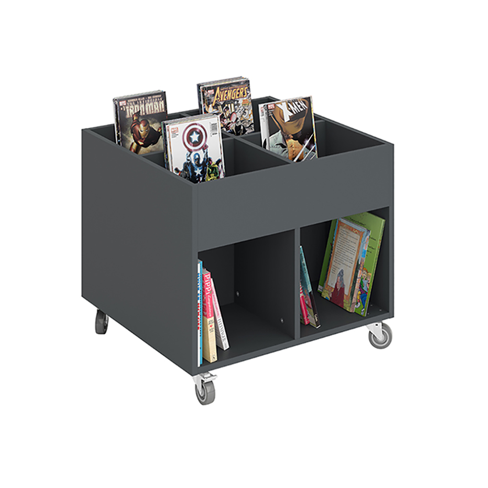 Je nach Höhe ist er geeignet für Kinder und Erwachsene und kann so in allen Bereichen der Bibliothek eingesetzt werden.