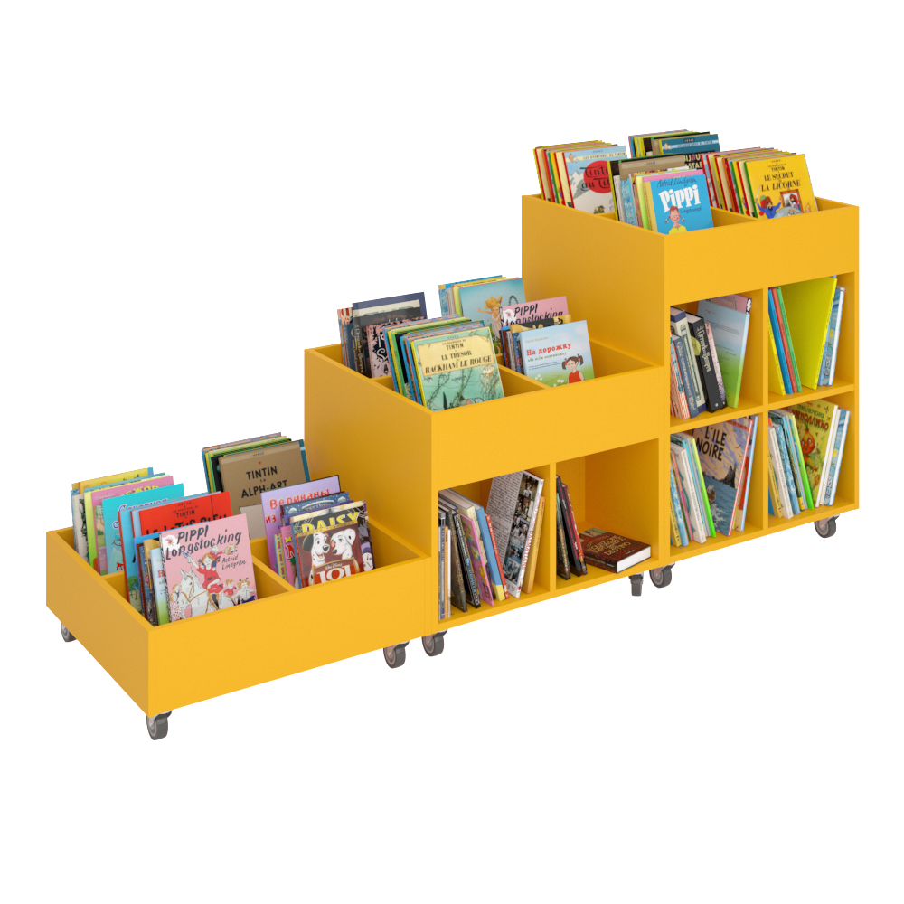 Je nach Höhe ist er geeignet für Kinder und Erwachsene und kann so in allen Bereichen der Bibliothek eingesetzt werden.