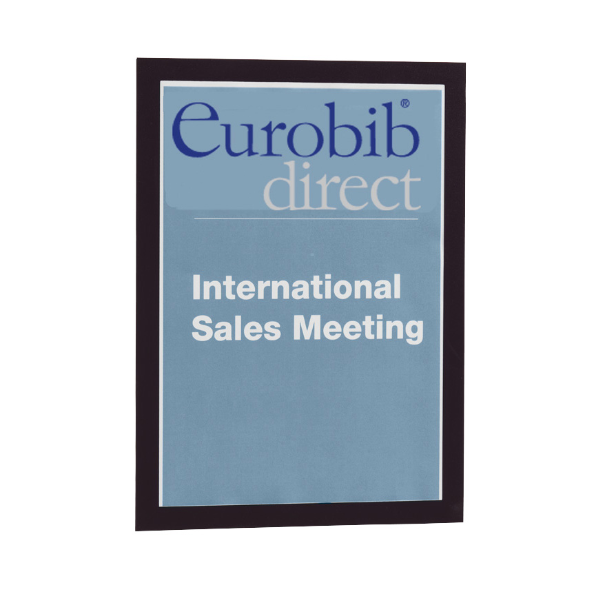 Der selbsthaftender magnetische Inforahmen (Duraframe®) kann einfach an eine glatte Tür, Wand, sowie Regalseiten usw angebracht werden.