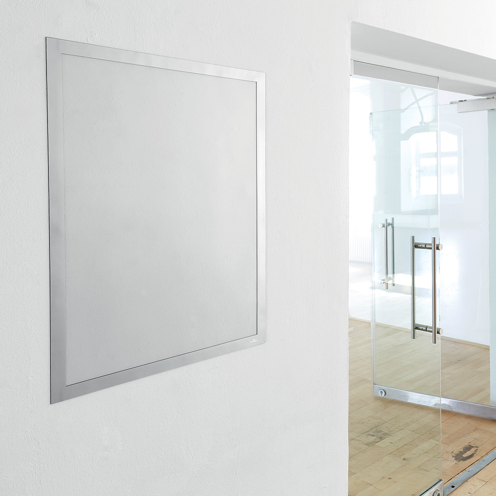 Der selbsthaftender magnetische Inforahmen (Duraframe®) kann einfach an eine glatte Tür, Wand, sowie Regalseiten usw angebracht werden.