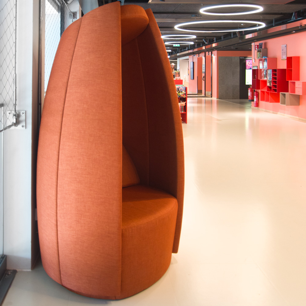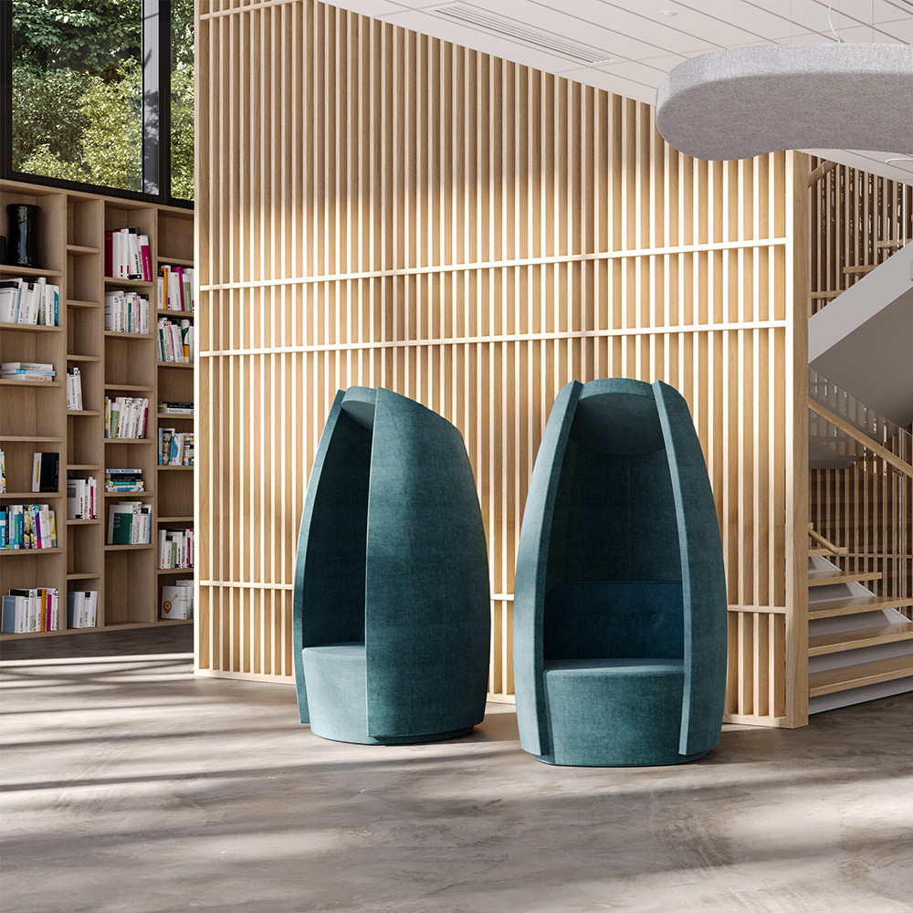 Die Form und die Materialien tragen zu einer guten Akustik bei, da unerwünschte Geräusche in den Hintergrund treten, sodass Sie in Ihre Gedanken eintauchen, in ein gutes Buch flüchten oder ungestört studieren können.