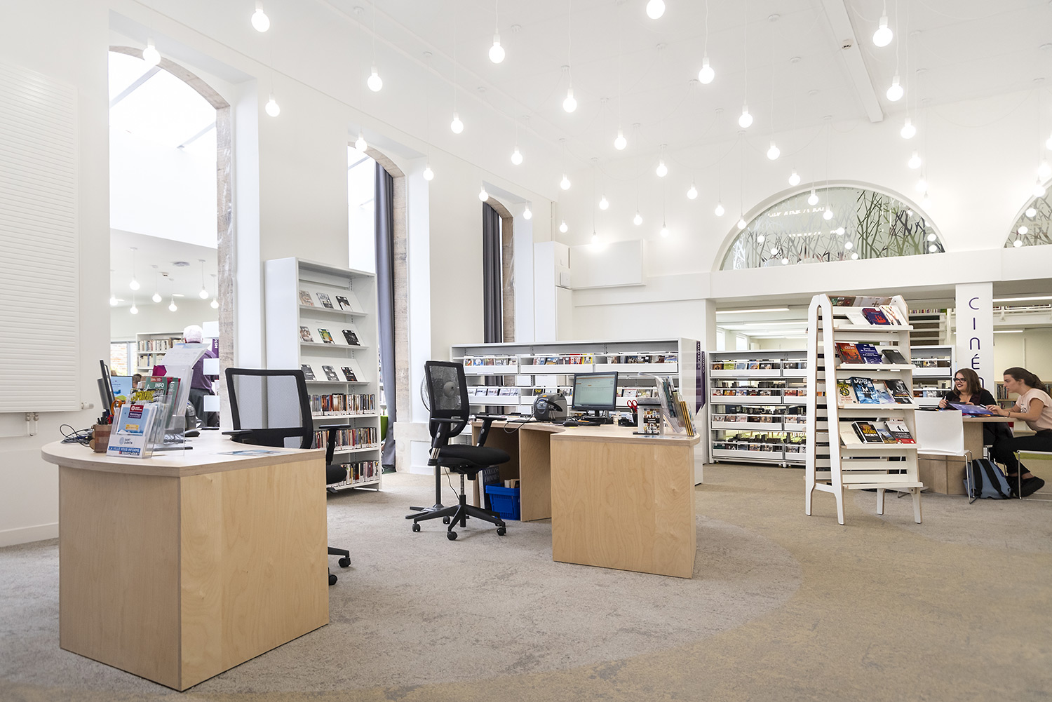 Hier geht es um laminiertes Birkensperrholz, auf dem Foto mit sichtbaren Kanten. Damit lassen sich eine strapazierfähige Oberfläche und eine langlebige Konstruktion erzielen. Ideal für die meisten stark beanspruchten Bibliotheksumgebungen!