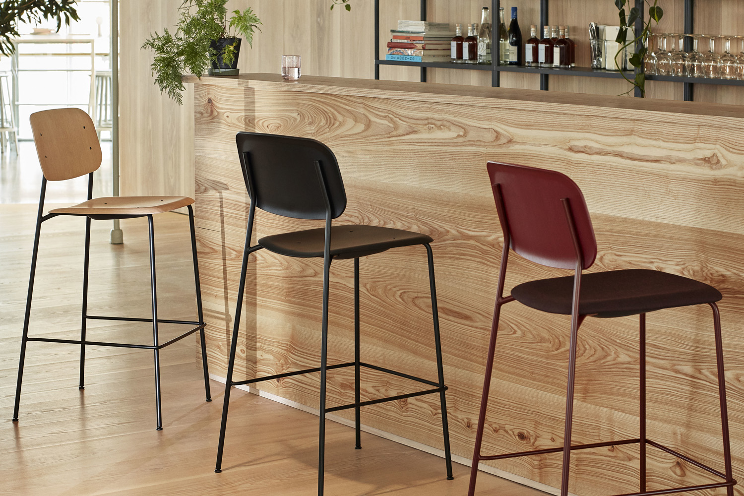 Soft Edge 90/91/95 ist in zwei Größen und in einer Vielzahl von Farben erhältlich. Der Barhocker ist auch mit gepolstertem Sitz erhältlich.