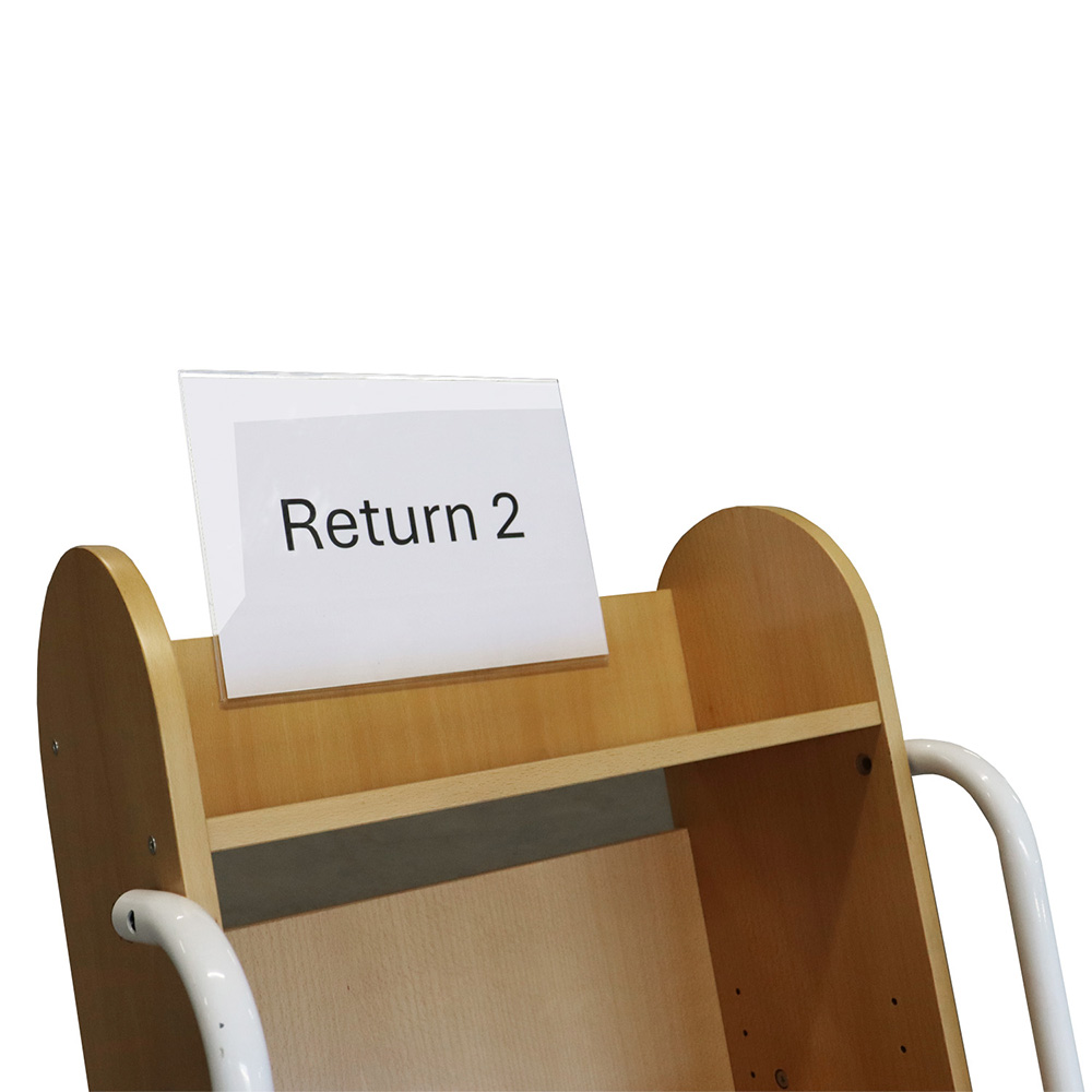 Ein teilweise doppelseitiges Acrylschild für die zweckmäßige und genaue Beschilderung von Bücherwagen, Trögen usw. Es ist sehr einfach zu montieren und die Beschriftung kann leicht geändert werden.